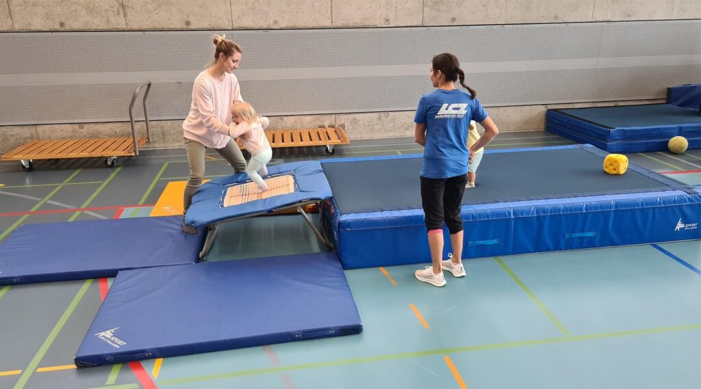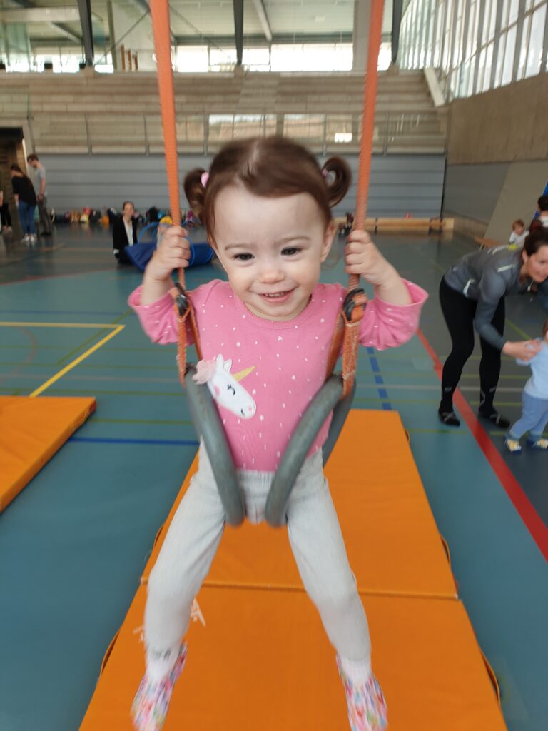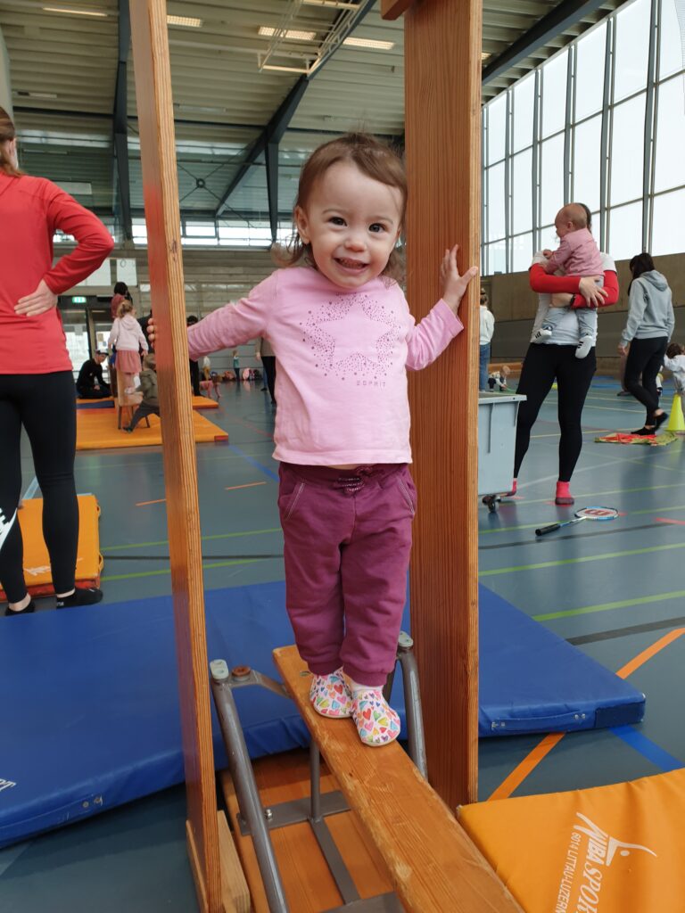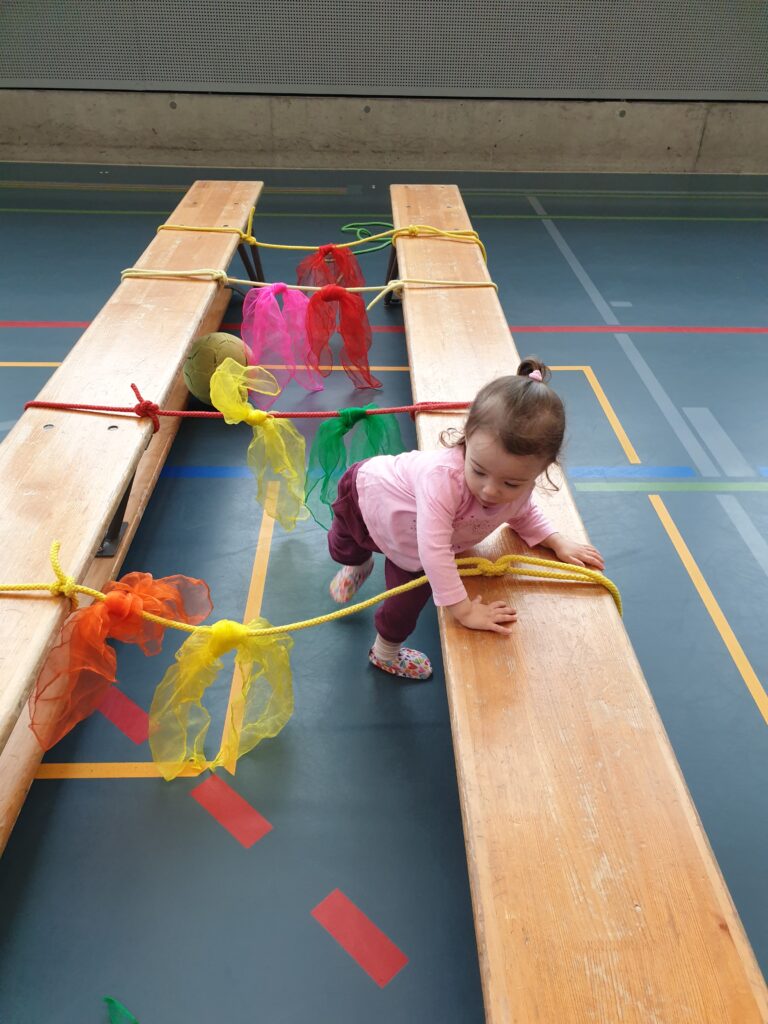 Wir stellen gemeinsam Bewegungslandschaften auf, in denen die Kinder nach dem Begrüssungslied dann frei turnen dürfen, wie sie gerade möchten. Am Schluss räumen wir gemeinsam wieder auf und machen ein Abschiedsritual.